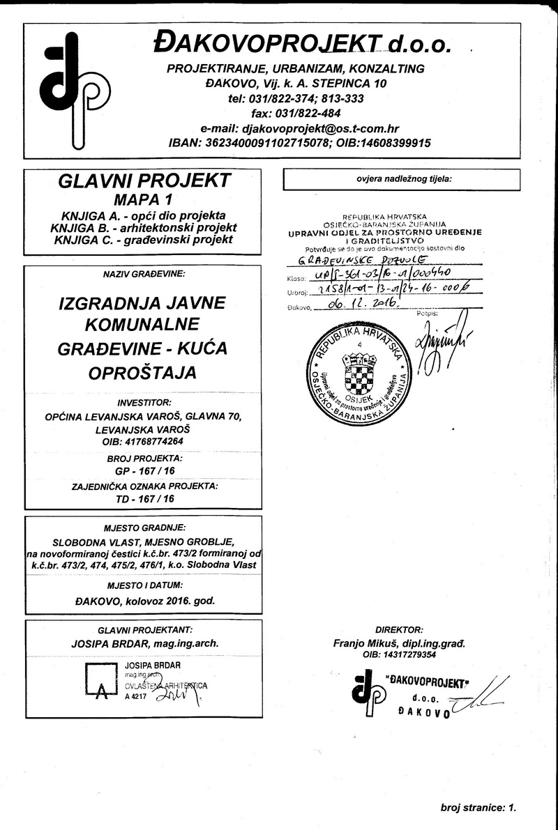 Među odobrenim prijavljenim projektima našao se i projekt Općine Levanjska Varoš koje će Ministarstvo regionalnoga razvoja i fondova Europske unije u 2017. godini iz Programa održivog razvoja lokalne zajednice sufinancirati iznos od 200.000,00 kuna za izgradnju javne komunalne građevine - kuća oproštaja u naselju Slobodna Vlast.